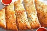 A classic snack, our garlic knots are strips of pizza dough tied in a knot, baked, and then topped with melted butter, garlic, and parsley. Served with a side of sauce.